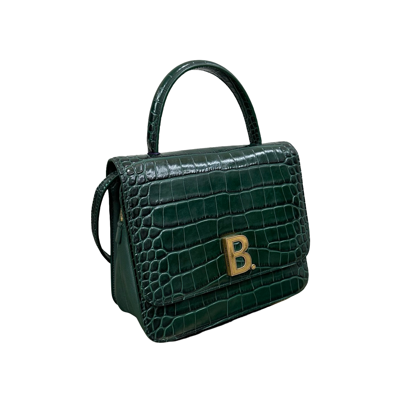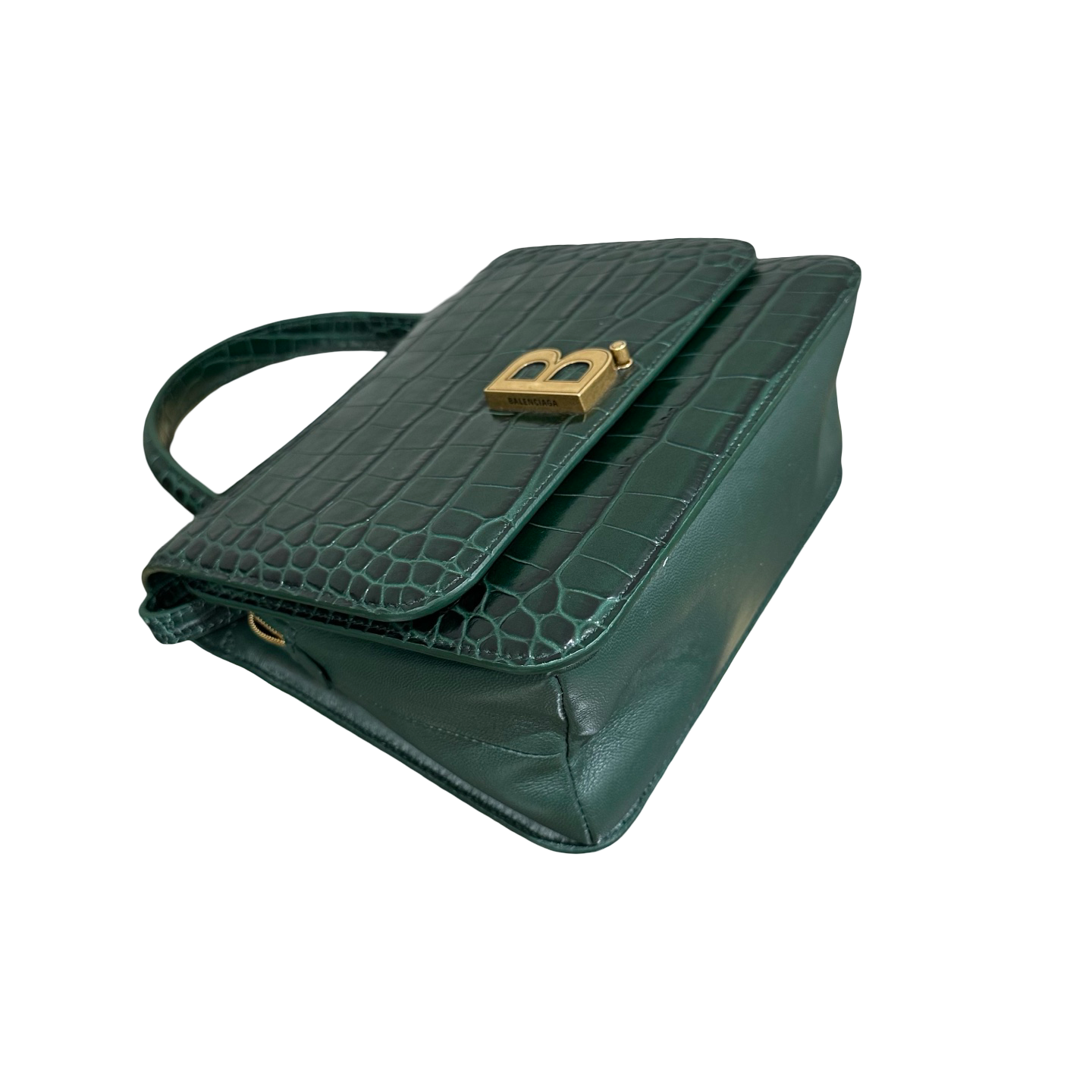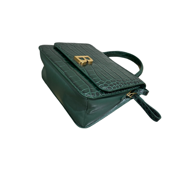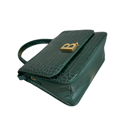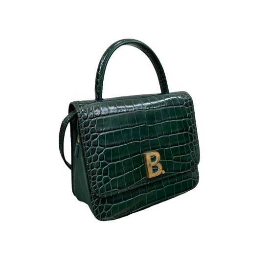 Balenciaga Green & Gold B Bag Croc-Embossed Top Handle Bag | 98% New | Authentic Luxury