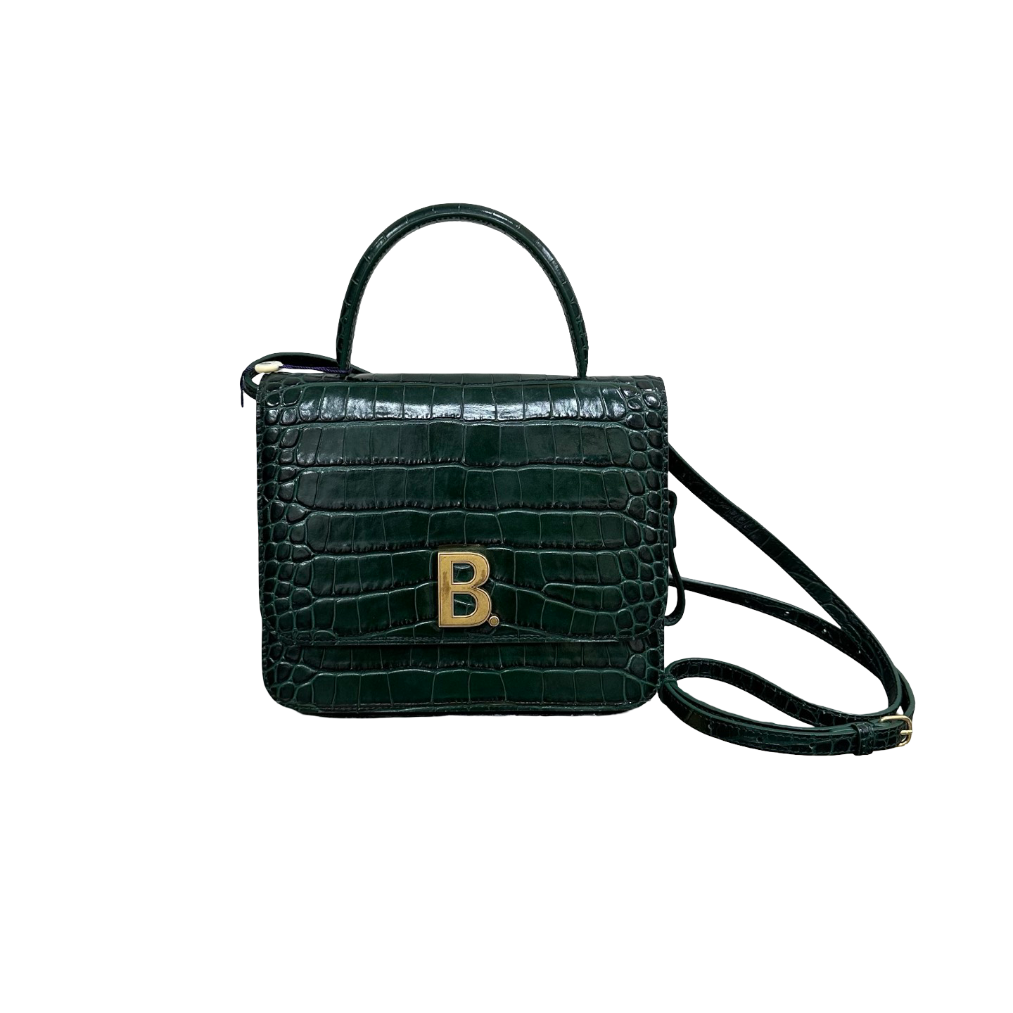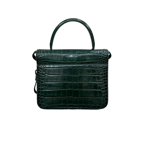 Model: Green & Gold B Bag Croc-Embossed Top Handle Bag