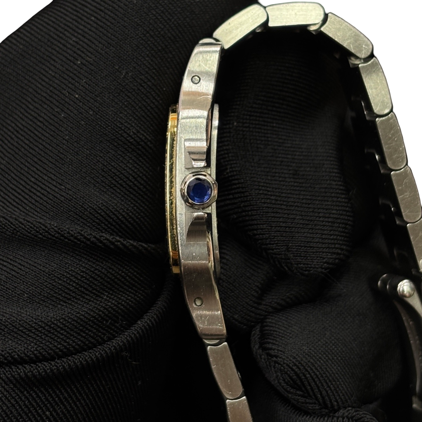 Crafted from stainless steel and 18K yellow gold, this 23.5 mm masterpiece embodies the heritage of Cartier’s iconic Santos line. The polished case and signature exposed screws evoke a spirit of adventure, while the reliable quartz movement ensures perfect timekeeping with minimal maintenance.