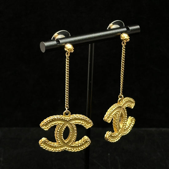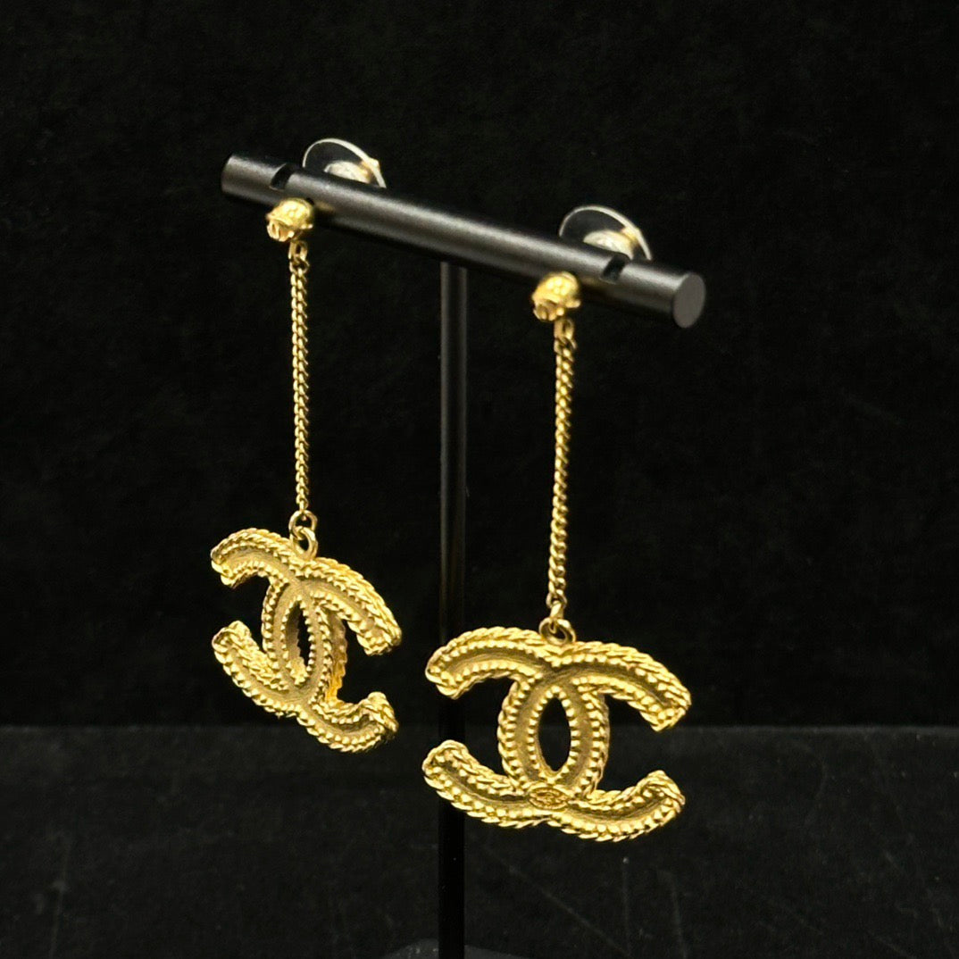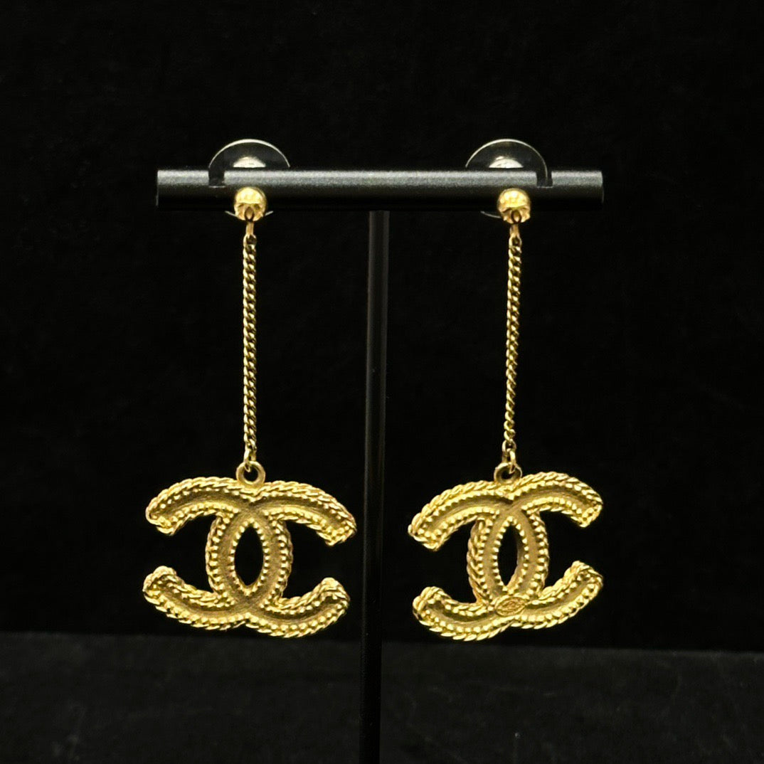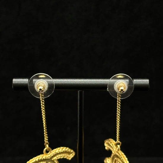 CHANEL 14C Gold Double-C Chain Stud Earrings