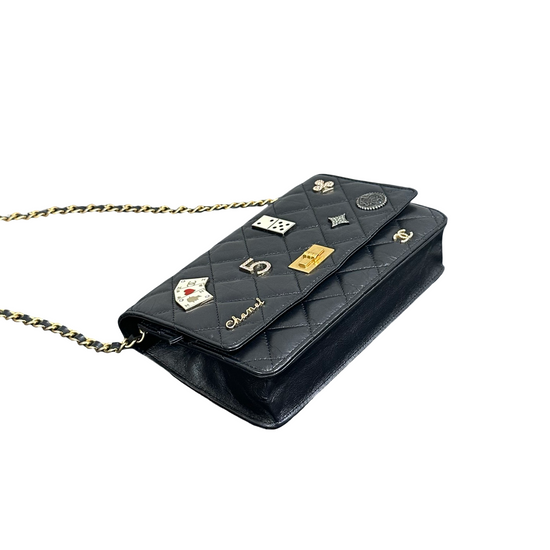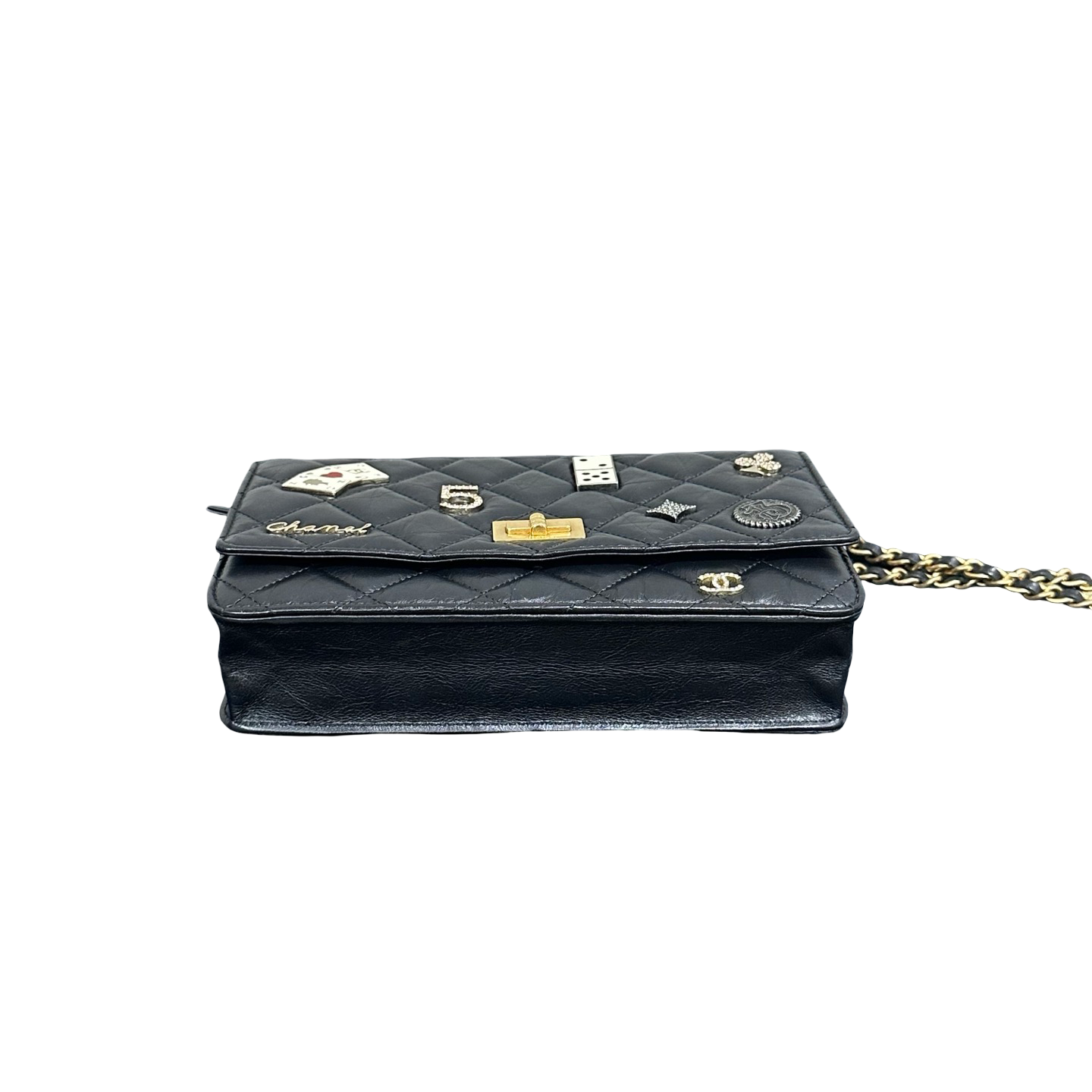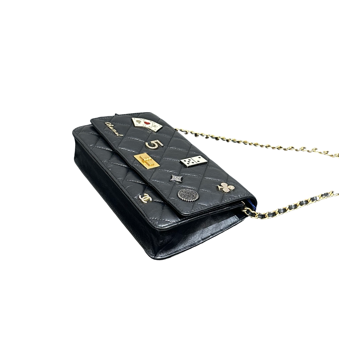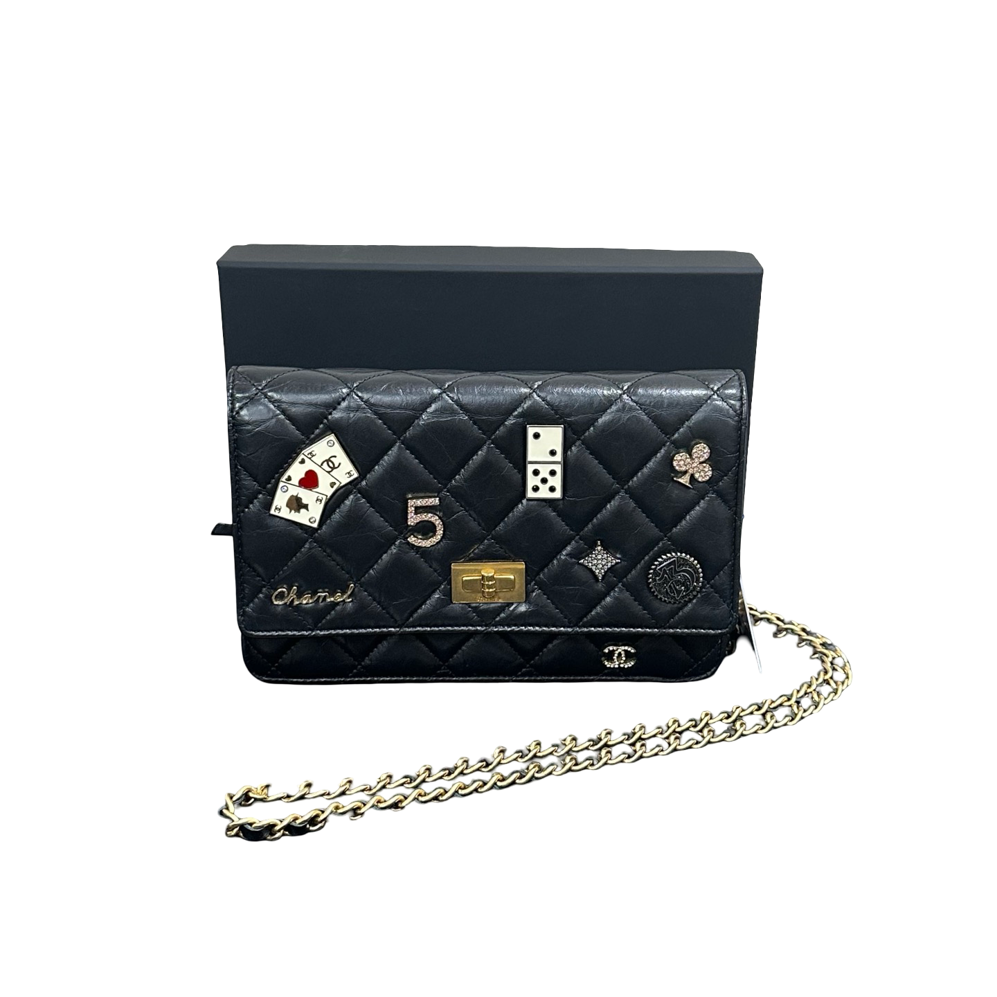 CHANEL 2.55 WOC Black Caviar with Gold-Tone CC Logo Chain Wallet