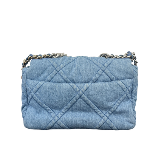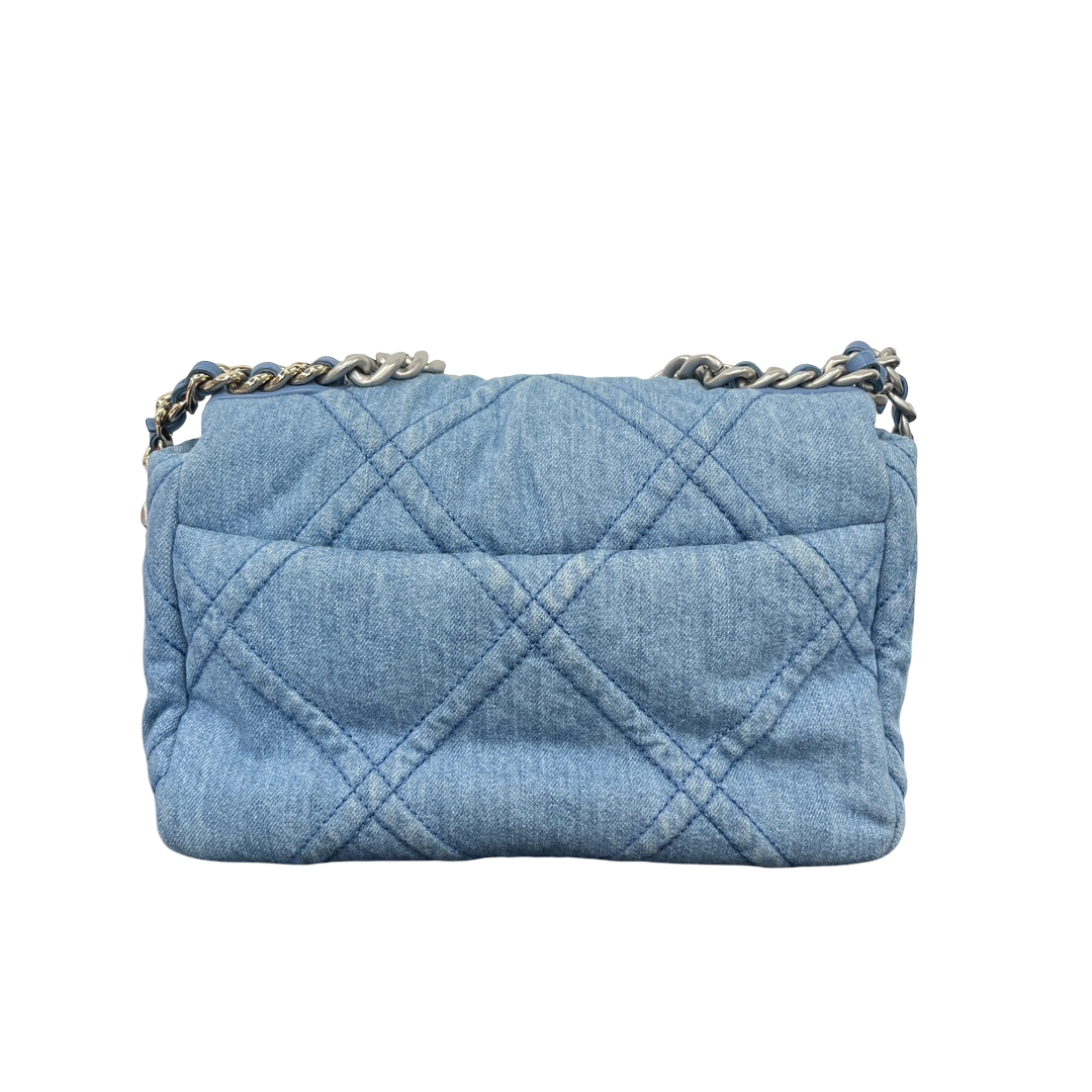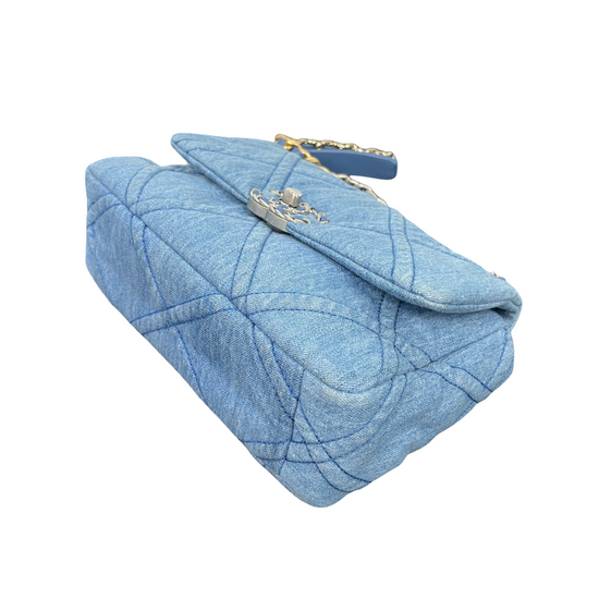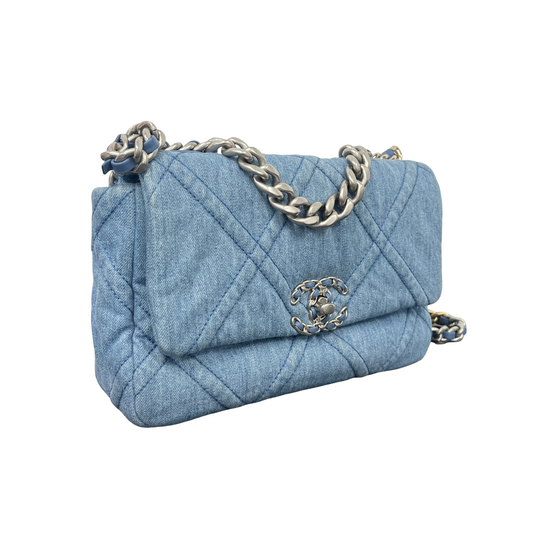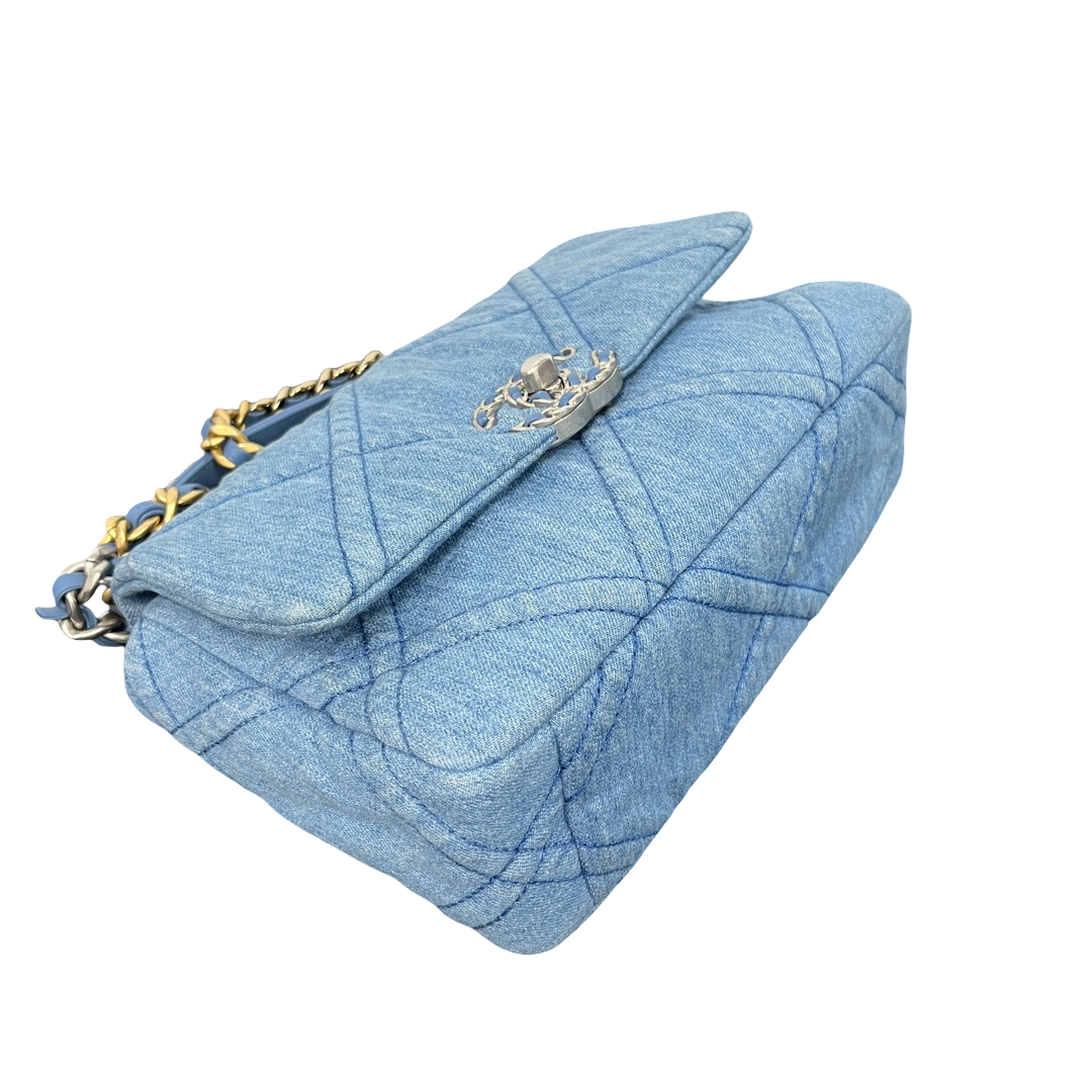 CHANEL 22P Denim Small 19 Flap Bag – Light Blue Quilted Elegance