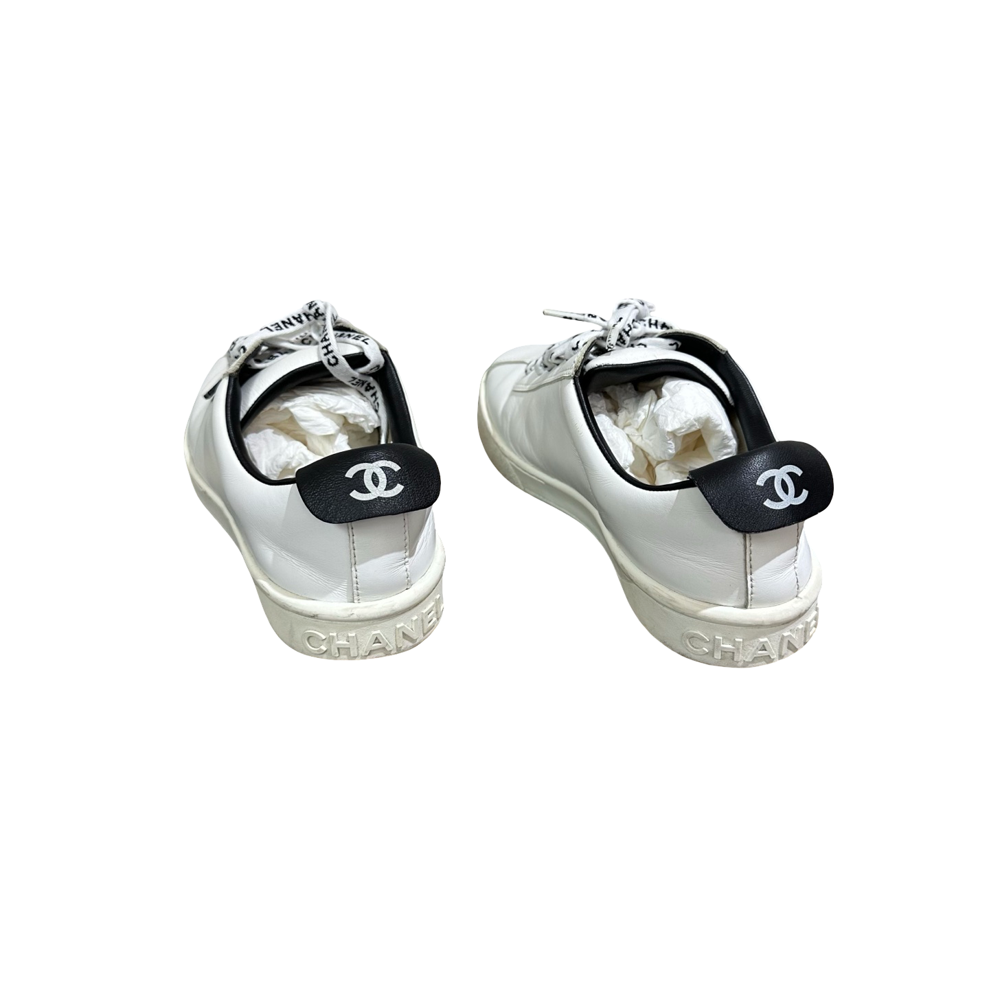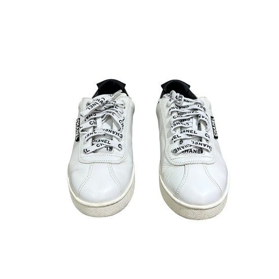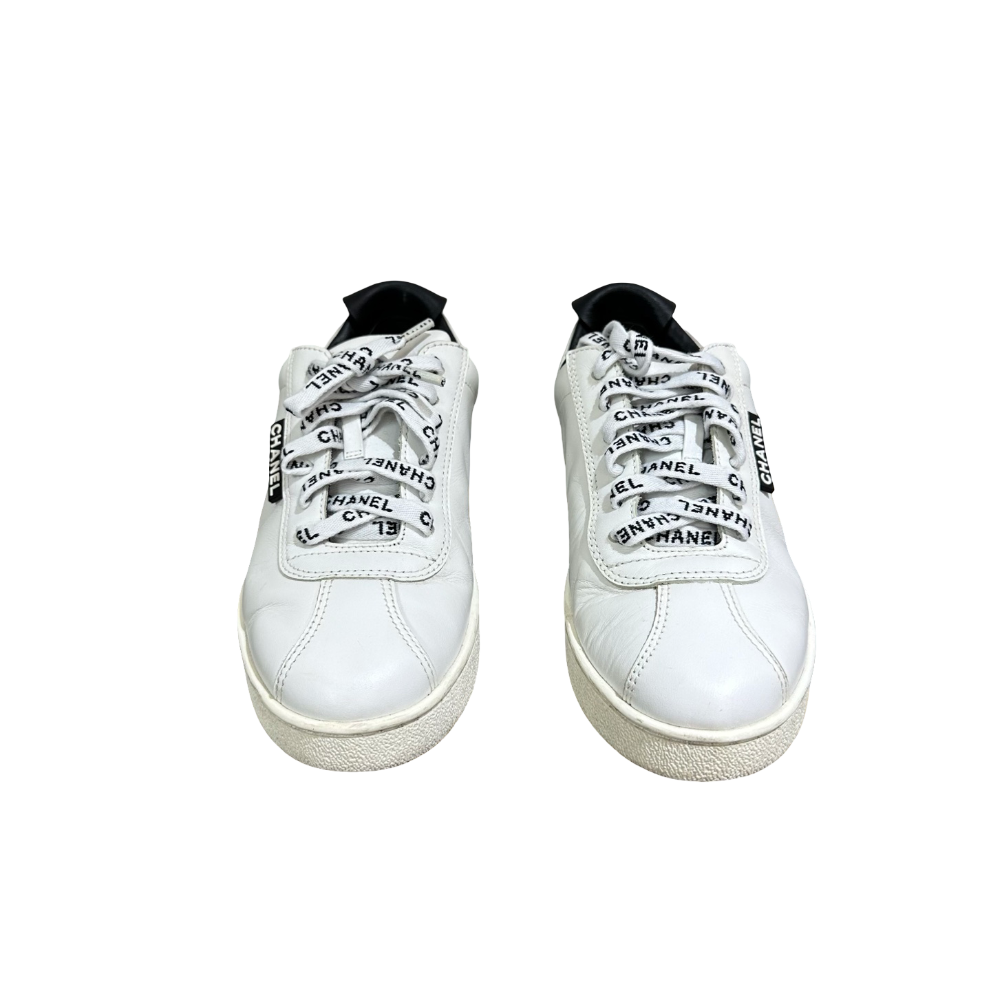 CHANEL Letter Shoelace White Sneakers – Size 36