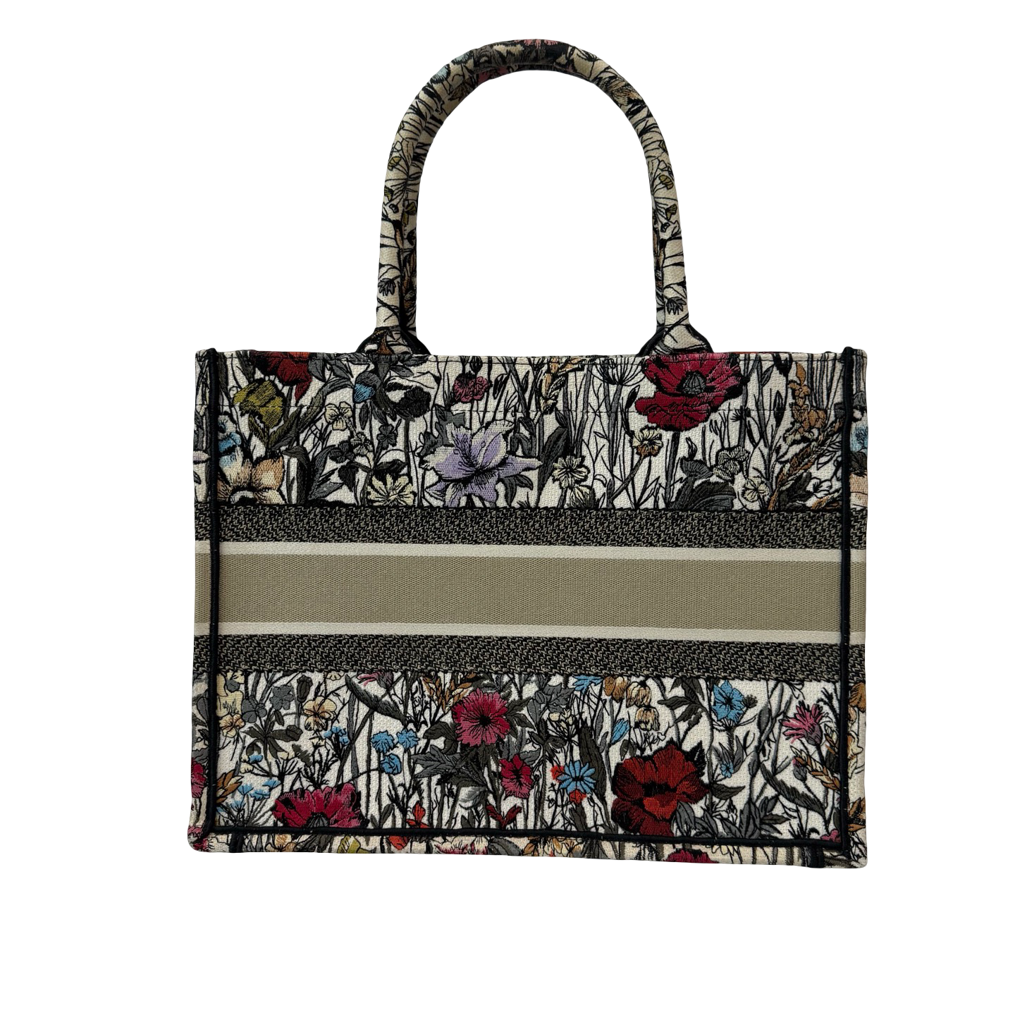 The Dior Floral Embroidery Tote is a stunning work of art, meticulously crafted with multicolour floral embroidery on durable canvas. Its spacious 36.5 × 28 × 17.5 cm design makes it perfect for both daily use and travel, while the dual top handles allow for comfortable hand carry or shoulder wear.