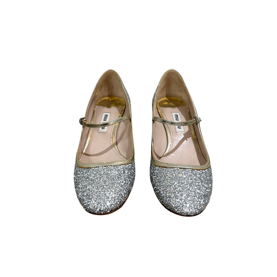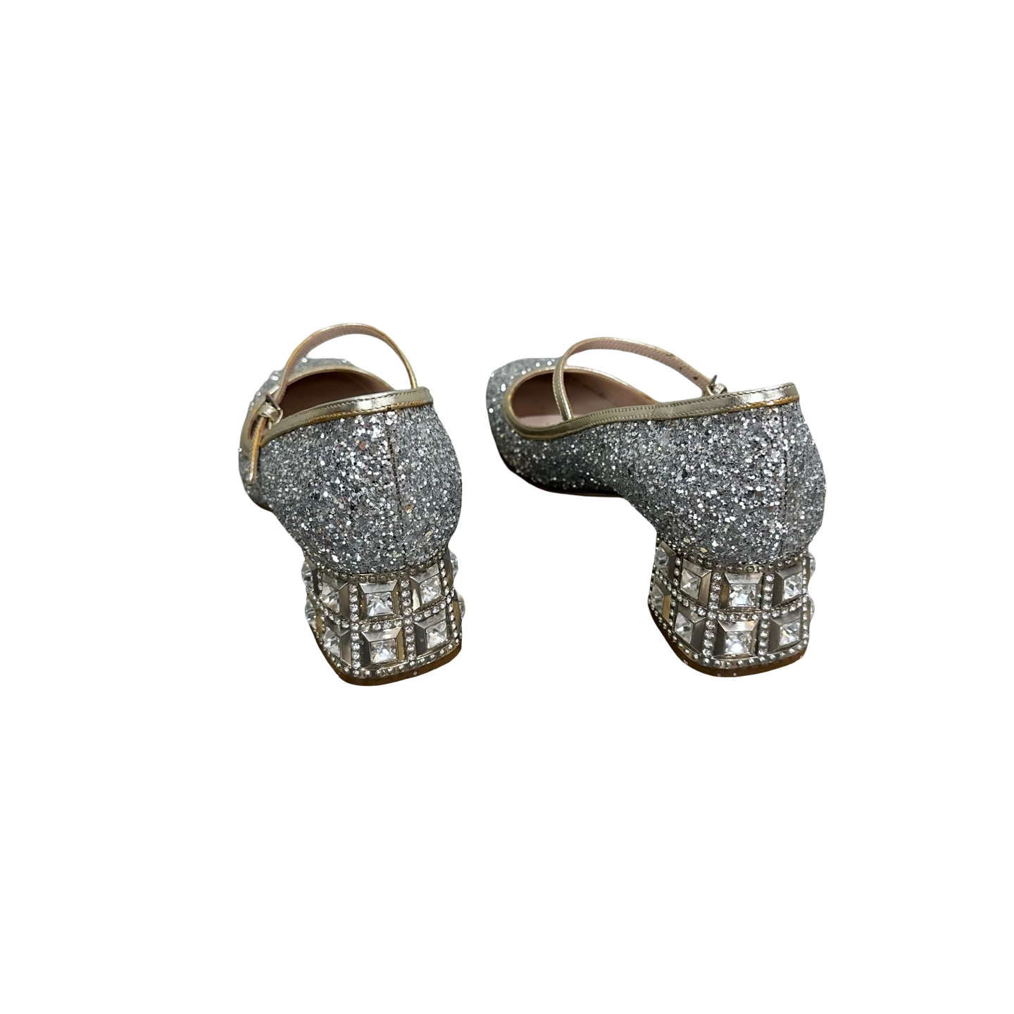 MIU MIU Silver Sequin Mary Jane Block Heel Shoes – Size 3