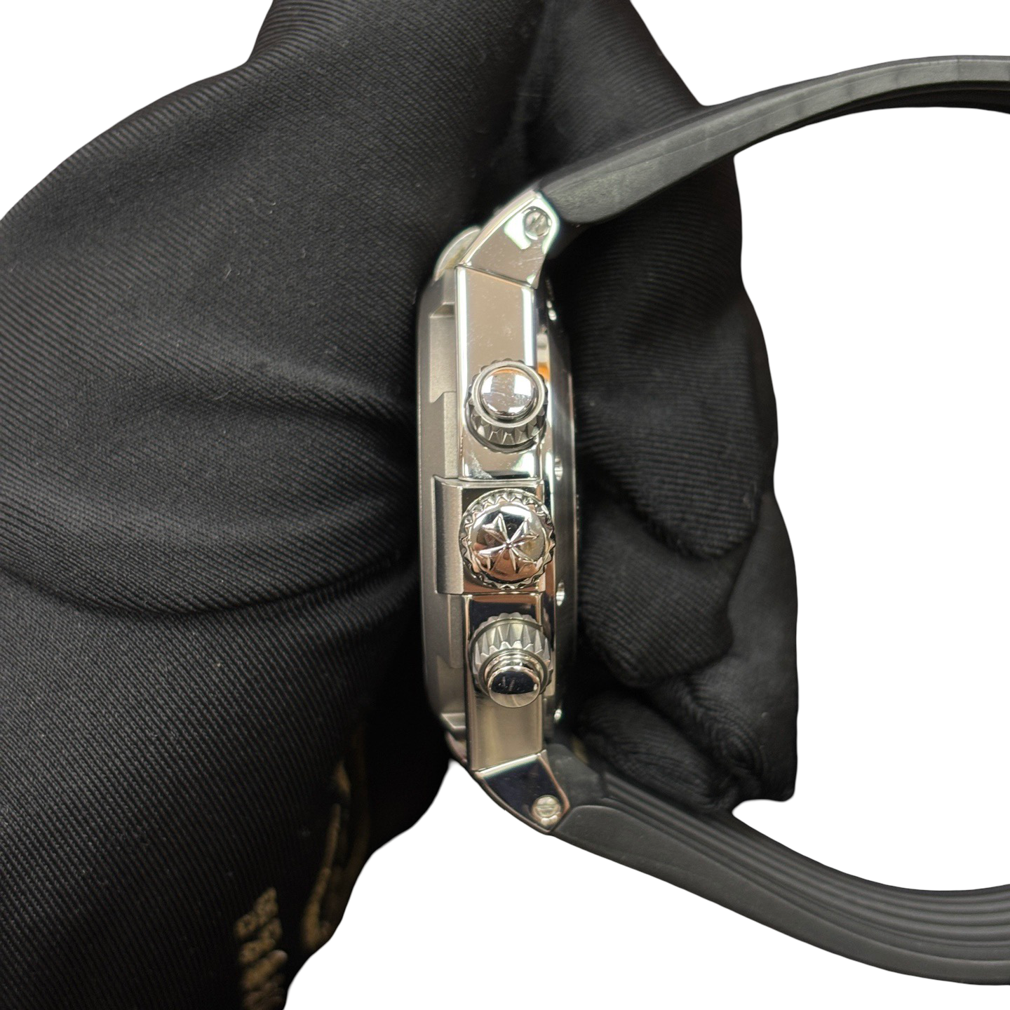 Commanding presence meets refined craftsmanship in the Vacheron Constantin Overseas Chronograph. This 42 mm automatic timepiece, crafted in stainless steel, embodies the adventurous spirit of the Overseas collection while maintaining a timeless elegance.
