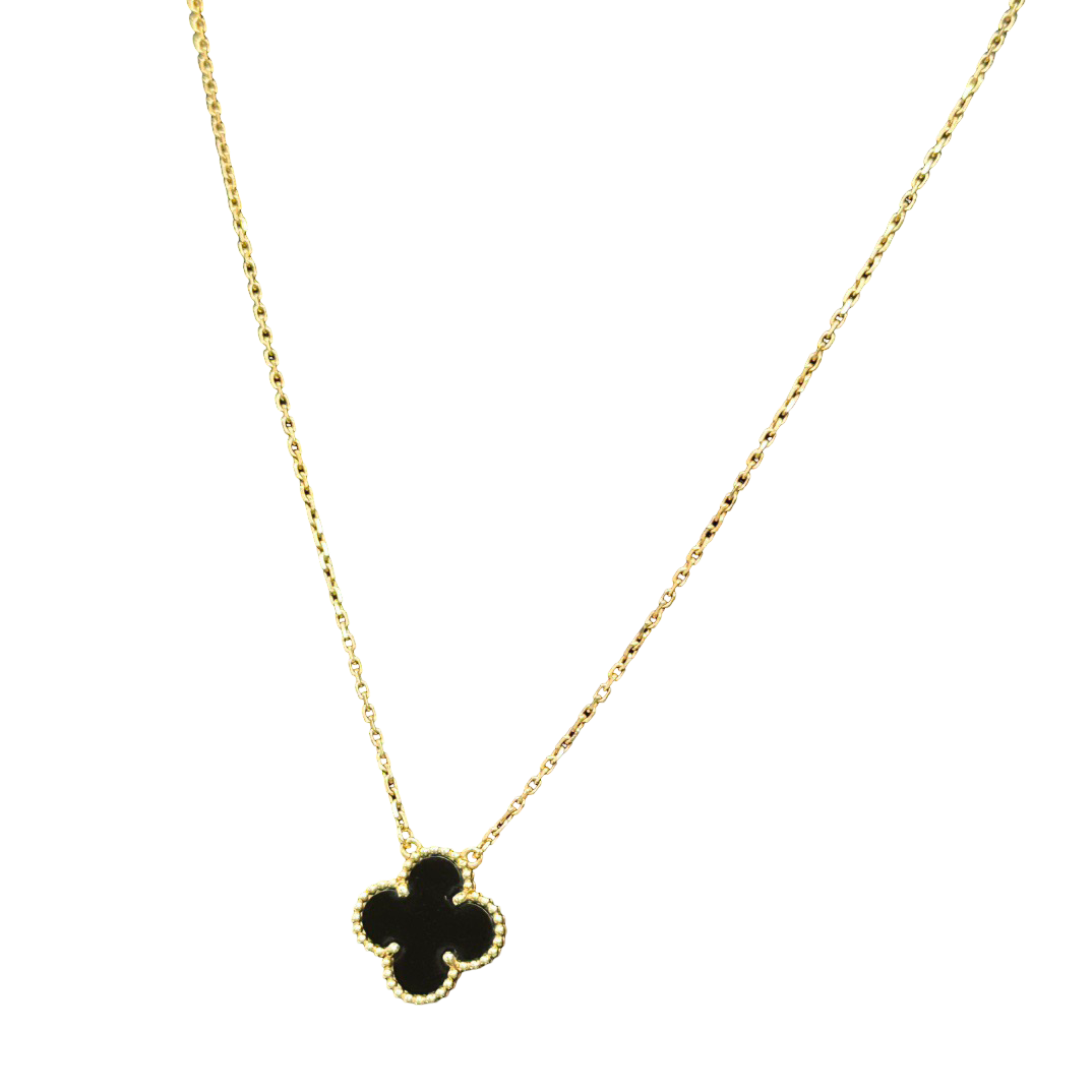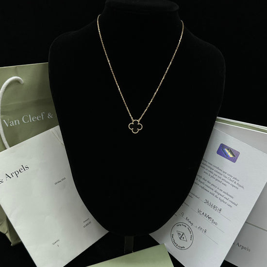 Van Cleef & Arpels, VCA, Vintage Alhambra, Onyx Necklace, 18K Yellow Gold, Luxury Jewelry, Designer Necklace, Four-Leaf Clover